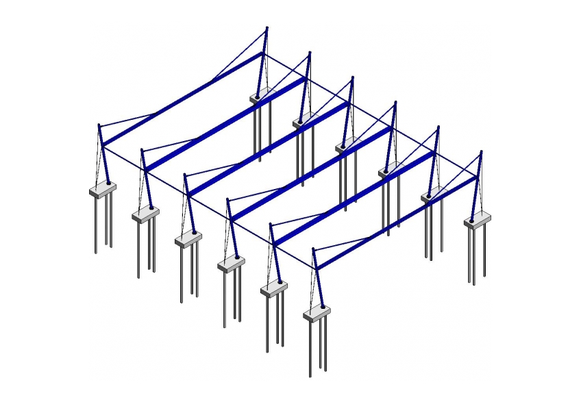 Load-bearing structure: Steel structure, retractable fabric roof, span 22m, deep foundation on micropiles